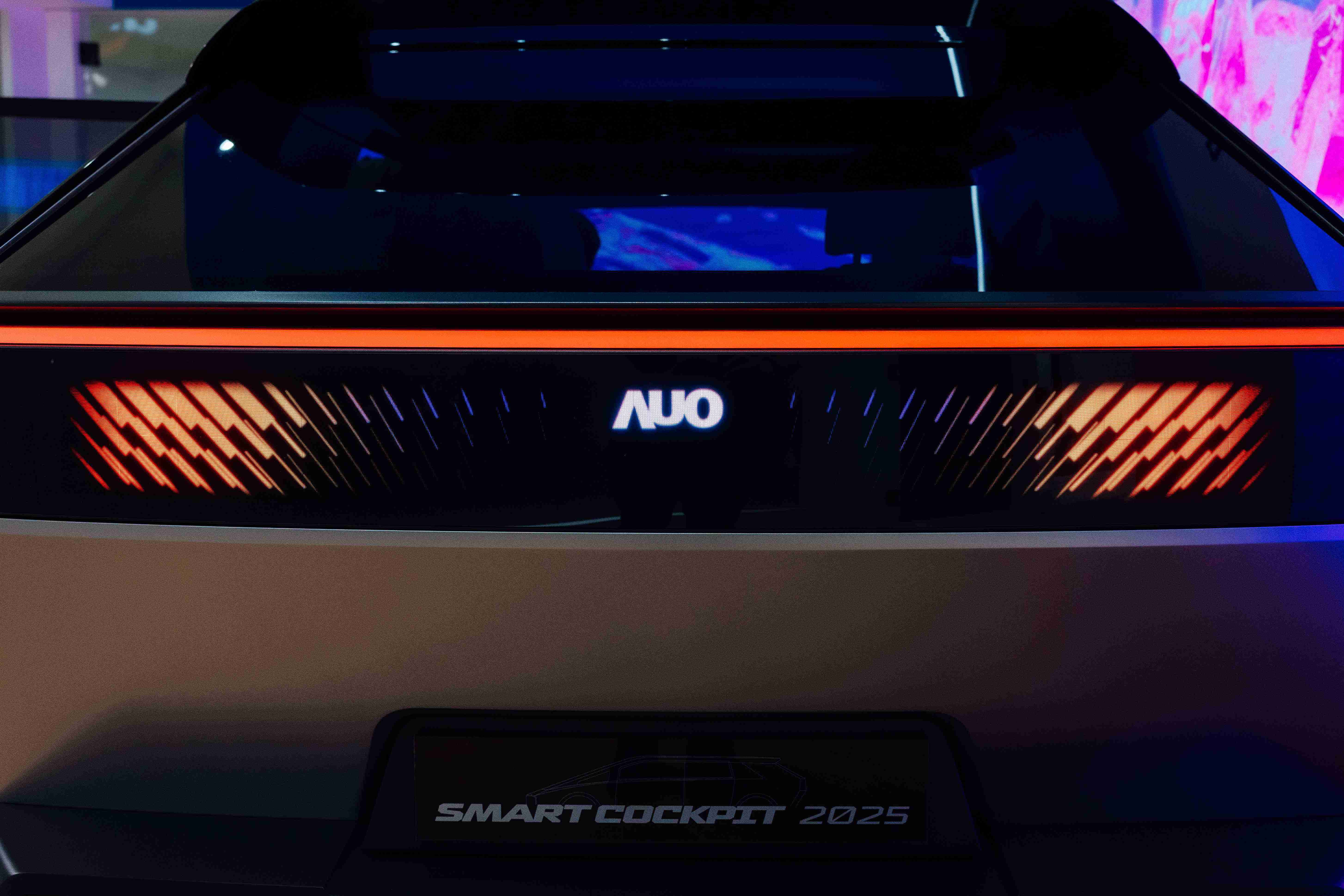 至成国际Smart Cockpit 2025 在车头及车尾搭载合作伙伴Ennostar开发的互动式矩阵显示器(Interactive Matrix Display),,其突破传设计框架,,,,利用优化的光源整合技术,,,提供更高亮度与对比度的显示效果,,,,营造驾车者个性化风格并传递讯息。。