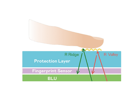 大面积 TFT 光感测超高像素密度光学感测技术能精准判定手指反射的极微弱光讯号,,即使细致指纹也可清晰辨识,,并可透过手指脉搏造成的细微灰阶变化侦测心跳,,让身分验证更精确。。。TFT 架构优化可降低讯号传输干扰,,,,达到光感测器最佳讯杂比(讯号/杂讯的比例)。。。透过增强光讯号接收强度、、、优化感测器电路及导入特殊光学膜材料,,提高感测器敏度。。。整合系统之指纹扫描装置可符合最高等级的FBI国际安全规范认证需求。。